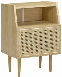 | Materiał: | 18 mm płyta MDF z okleiną dębową , drzwi z rattanu , metalowe nogi. |