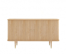 Wykonana z 18 mm grubej płyty MDF i pokryta piękną okleiną dębową, szafka boczna emanuje zarówno trwałą jakością, jak i ponadczasową estetyką. Stabilnie stoi na eleganckich nogach z litego dębu, co daje ziemisty i harmonijny charakter, który doskonale wpasowuje się w nowoczesne, skandynawskie otoczenie.