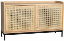 Piękne drzwi z naturalnego rattanu nadają komodzie ekskluzywne i stylowe odczucie. Połączenie rzemieślniczych materiałów i czystych linii sprawia, że łatwo je dopasować do innych mebli i detali dekoracyjnych. Komoda sprawdza się równie dobrze jako dekoracyjny mebel do przechowywania w salonie, stylowa komoda w sypialni lub praktyczna powierzchnia do odkładania w przedpokoju.