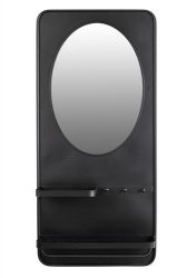 | Materiał: | Lustro szklane wykonane z czarnego malowanego proszkowo żelaza z trzema półkami i wieszakiem. |