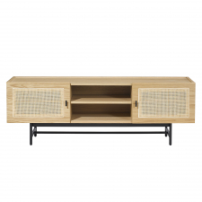 Eleganckie drzwi z naturalnego rattanu nadają szafce RTV unikalny i nowoczesny wygląd, jednocześnie wprowadzając ciepłą i przytulną atmosferę do pomieszczenia. Dzięki ponadczasowemu designowi i neutralnym kolorom, ta szafka RTV łatwo dopasuje się do innych mebli i stylów wnętrzarskich.