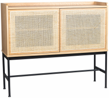 | Materiał: | 18 mm płyta MDF z okleiną dębową , drzwi plecione z rattanu , metalowe nogi. |